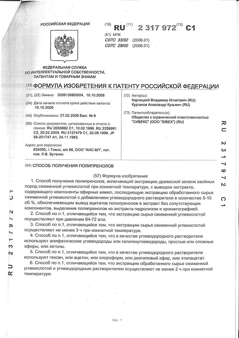 俄羅斯和拉脫維亞醫(yī)科院利用西伯利亞冷杉針葉提取的聚戊烯醇開發(fā)了ROPREN制劑, 在緩解神經(jīng)退行性疾病、免疫功能、護(hù)肝、多發(fā)性硬化癥、抗肝炎病毒和艾滋病毒以及輔助化療白血病等方面具有明顯的藥效。