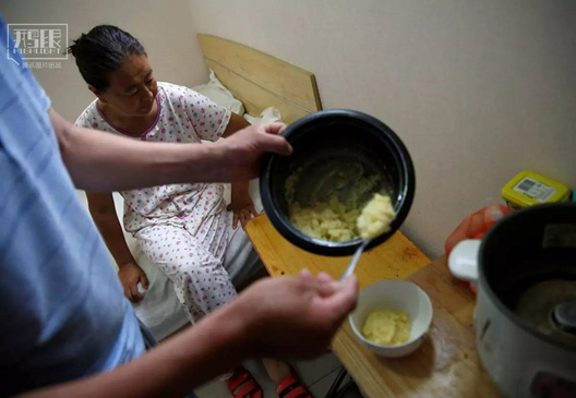 46歲的劉先生是一個農(nóng)民工。他覺得,大城市和小地方的醫(yī)療資源太不平衡,好醫(yī)生根本不想在小地方工作,“如果得了大病,最好還是去北京治。”圖為2016年6月23日,劉先生在房間為王女士做早飯。