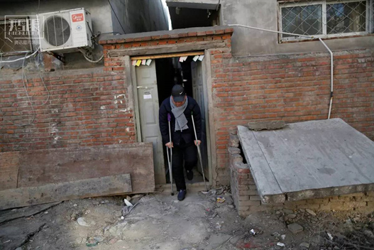 2016年1月13日,袁運(yùn)平(音譯)拄拐出門。
