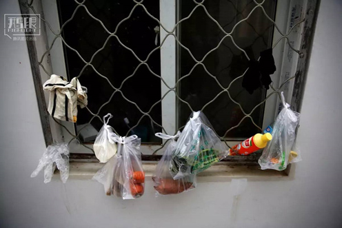 2015年10月23日,北京,癌癥旅館的窗臺上掛著買來做飯的菜。
