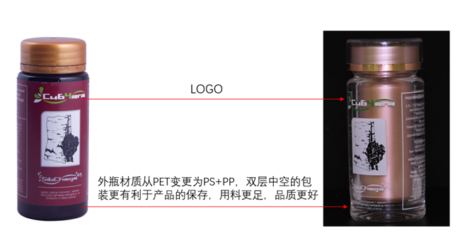 為了更好的防止假冒偽劣產(chǎn)品,新瓶采用獨(dú)有的定制包裝。在瓶蓋、瓶底都可見西伯利亞白樺茸公司LOGO,生產(chǎn)日期根據(jù)每批次不同,分別印在瓶底或瓶蓋上。